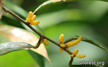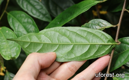 A small shrubby tree that grow up to 25m. The secondary veins of the leaves are depressed, and are intramarginally looped. The leaf margins are also slightly crenate. The flowers are borne on yellow spikes and the fruits are rounded.