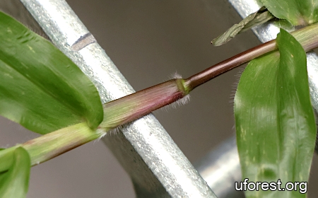 White tuft of hairs at the base of the leaf sheaths.