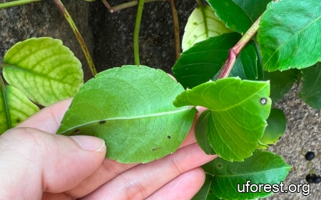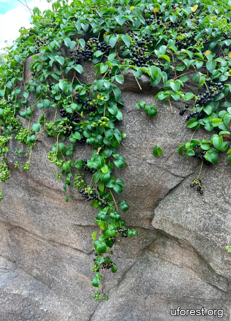 A climber commonly found in young secondary forests. It has three leaflets, each with serrated margins. The fruits grow in clusters like grapes and ripen to dark purple.