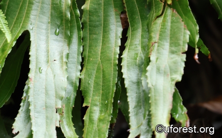 This is a critically endangered fern that is presently found at three locations at Pulau Tekong and parts of Western Catchment area (Lok et al., 2009). It is naturally found on slopes or cliffs, in forests or facing the sea. It spreads vegatatively via long creeping rhizomes, allowing it to carpet an entire area. Together with its habitat preference, the leaves are also immediately identifiable with deeply lobed fronds bearing serrated margins.