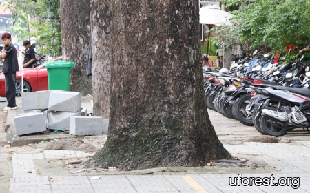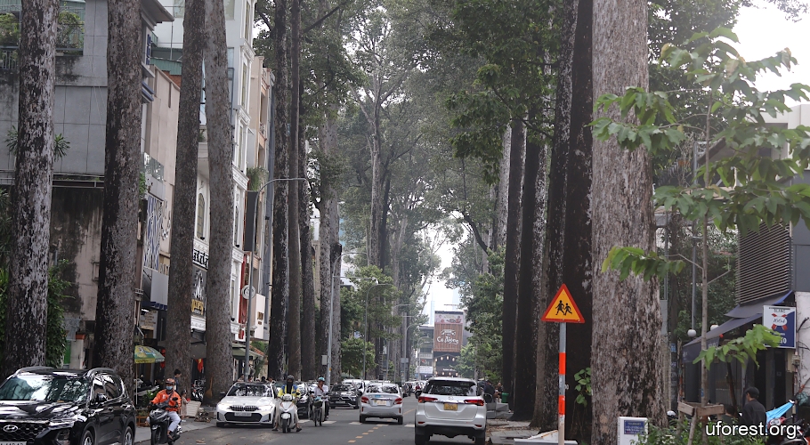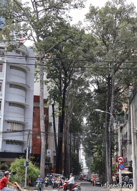 Rows of huge Dipterocarpus alatus along Sương Nguyệt Anh Road, Ho Chi Minh City, Vietnam.