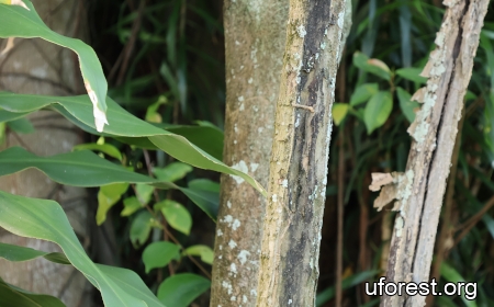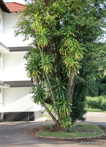 This is a very common ornamental Dracaena cultivated around the island, and also found as remnants in young secondary forests that used to be kampungs. It is a shrub that can grow up to about 5m, with leafy clusters at the tip of each stem arranged in a spiral and overlapping manner.