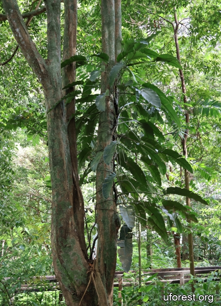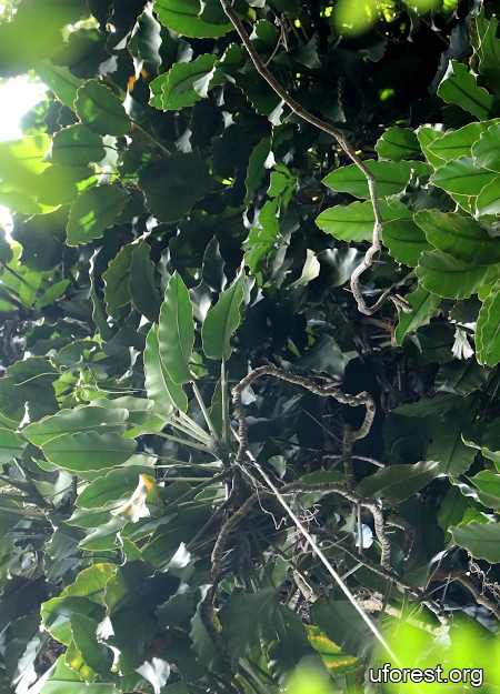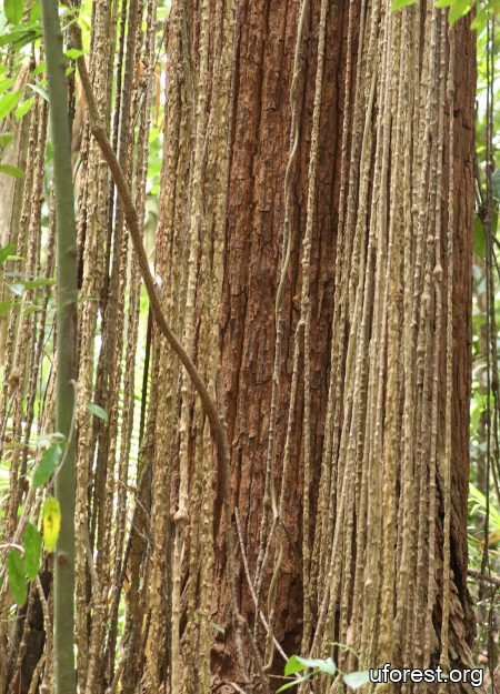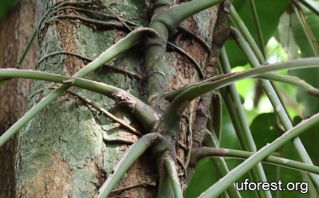 On the left of the stairs leading to the summit of Bukit Timah Hill, you should be able to see a mass of aerial roots of the Greater Epipremnum dropping from the tree canopy.