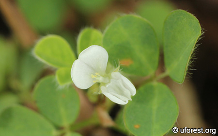 White-flowered Desmodium triflorum, with its keel petal lowered.