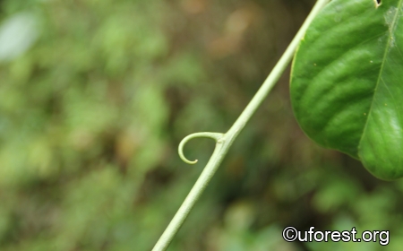 Woody climber with trifoliate leaves with a long petiole. The leaflets are elliptic or elliptic-oblong. They possess climbing hooks.