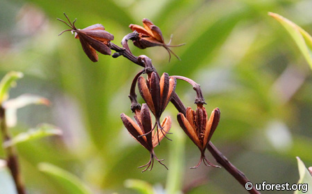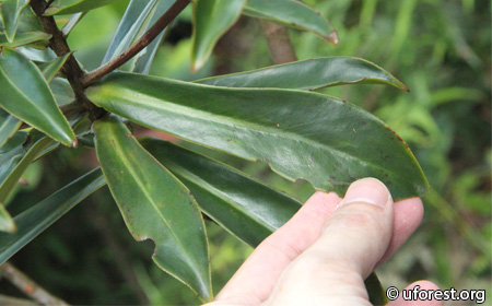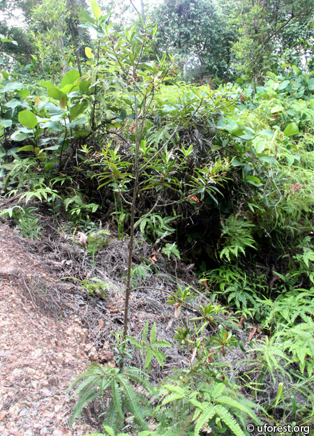 Ploiarium alternifolium is a shrub or small tree that can grow to 15m. It is easy to distinguish from its linear, thick leaves with no apparent veins, and lacking a petiole. They are arranged spirally. It also frequently bears white flowers and capsule fruits, which splits open like an umbrella.