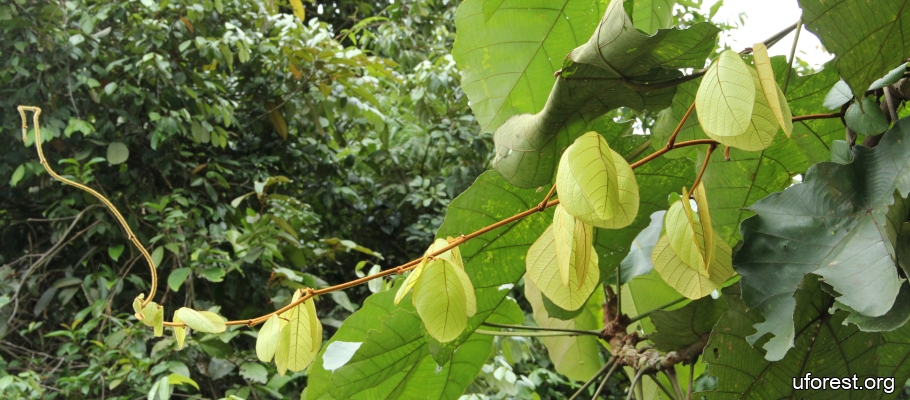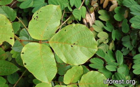 A common large climber that is capable of reaching the tops of the tallest trees in our nature reserves (Keng, 1990). It can be recognised from the large trifoliate leaves, of which the leaflets are oval or rounded. It has rusty brown hairs covering the leaves and young stems.